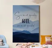 Un poster chrétien avec le verset biblique du Psaume 57,2 : "Aie pitié de moi, Dieu, aie pitié de moi". Le design aux douces nuances de bleu et la silhouette d'une montagne évoquent le calme, la confiance et la sécurité. Décoration murale parfaite pour la maison, le bureau ou comme cadeau pour les croyants.