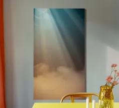 De doux rayons de lumière bleue créent un arrière-plan abstrait apaisant toile