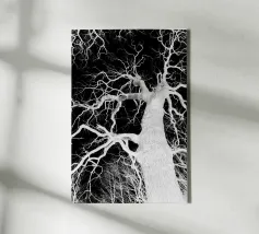 Un arbre magnifiquement détaillé avec des branches complexes éclairées par des lumières scintillantes, créant un effet enchanteur sur un fond noir austère, parfait pour améliorer l'esthétique des appareils mobiles.