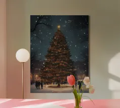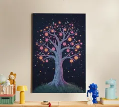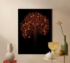 Arbre abstrait unique illuminé par des lumières scintillantes toile