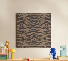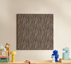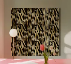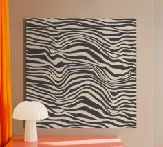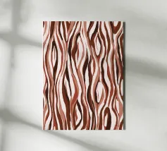 Un motif abstrait ressemblant à des rayures de zèbre avec des lignes brunes irrégulières sur un fond beige. Le motif a un aspect organique.