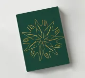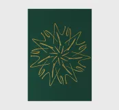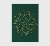 Dessin minimal mais expressif d'étoiles et de flocons de neige de type mandala, réalisé à la main, en or sur fond vert sapin.