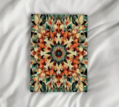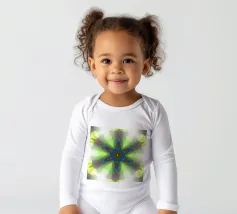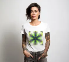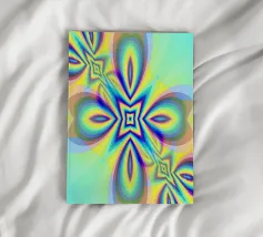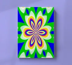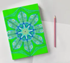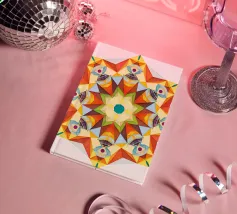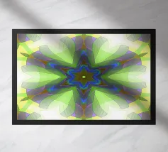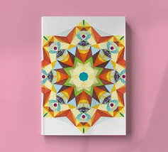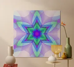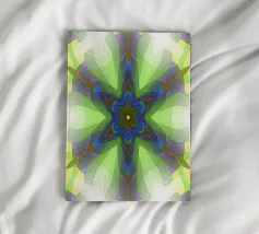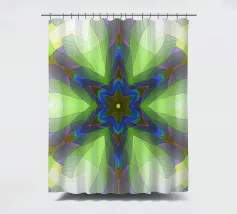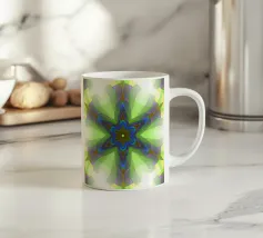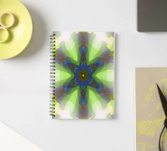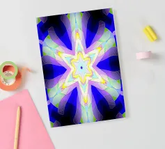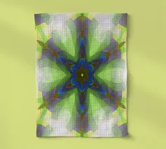 Étoile à 5 branches avec des formes décorées dans les couleurs vert-jaune-bleu.