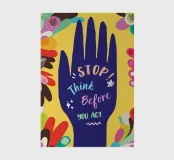 Partagez un message d'attention avec cette impression d'art numérique "Arrêtez de penser avant d'agir". Cette illustration contemporaine vibrante présente une main bleu foncé audacieuse qui sert de repère visuel, superposée à un message textuel clair et important. Entouré d'un ensemble vivant de formes abstraites colorées sur un fond jaune ensoleillé, le dessin est à la fois frappant et positif. Cette œuvre d'art à message graphique est parfaite pour encourager l'attention et l'action réfléchie dans n'importe quel espace. Cette reproduction numérique de haute qualité affiche une résolution de 7000x5000 pixels à 300 ppp, ce qui garantit une clarté exceptionnelle, des couleurs brillantes et une qualité d'image irréprochable.
