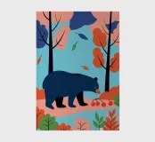 Appréciez la beauté naturelle d'une forêt d'automne avec cette illustration d'un ours à la recherche de nourriture. Les couleurs chaudes et le design minimaliste créent une atmosphère paisible et apaisante.
