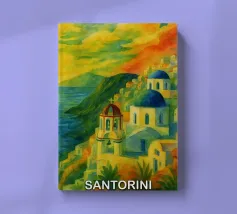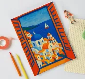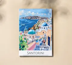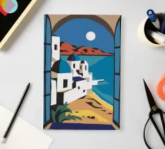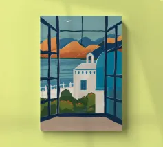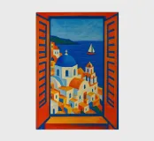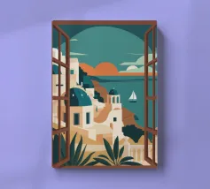 Fenêtre ouverte sur Santorin, île grecque de la mer Égée.