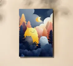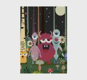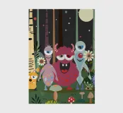 Un groupe de monstres amusants dans une forêt nocturne, entourés de fleurs, de champignons et de lumière magique. Ce design est ludique, créatif et parfait pour tous les fans de monstres et de fantaisie.