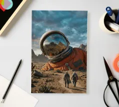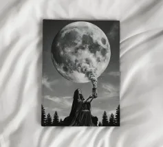 Découvrez la magie du voyage et du ciel nocturne grâce à cette œuvre d'art atmosphérique représentant une main qui touche délicatement le hublot d'un avion surplombant des dunes désertiques rougeoyantes. Un croissant de lune brille dans un ciel bleu profond rempli d'étoiles, créant un mélange serein d'errance et d'émerveillement. Les sables chauds et dorés contrastent magnifiquement avec les tons frais de la nuit, capturant le sentiment de solitude, de réflexion et de rêve au-dessus du monde. Parfait pour les amateurs de voyages, les minimalistes et les fans d'art cinématographique et de vues de fenêtre rêveuses.