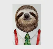 Un paresseux lent et régulier, vêtu d'une tenue de bureau soignée, transportant une confiance tranquille sur son lieu de travail.