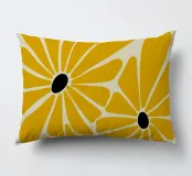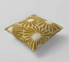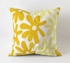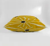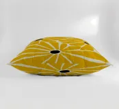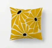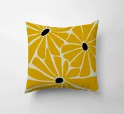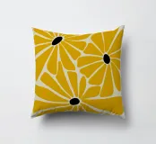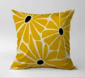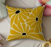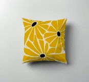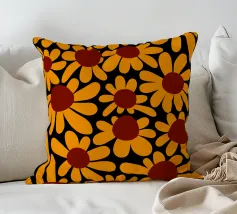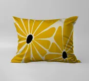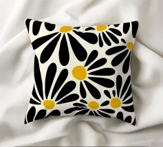 Des pétales d'un jaune éclatant, disposés selon un motif symétrique, créent un motif floral saisissant. Les centres noirs ajoutent un point focal contrasté, rehaussant l'éclat de la composition.