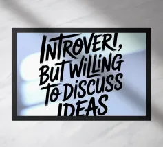 Une œuvre d'art typographique réfléchie pour les esprits calmes. La phrase "Introverti, mais prêt à discuter d'idées" est inscrite en lettres expressives de style brossé sur un doux fond d'ombre et de lumière. Parfait pour les intérieurs minimalistes, les espaces de travail confortables et tous ceux qui préfèrent les conversations profondes au bruit. Un visuel doux avec un message puissant.
