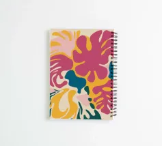 A vibrant and playful abstract pattern of interlocking, fluid shapes in a lively palette of pink, yellow, blue, and green. The composition is energetic and full of joyful, organic movement.