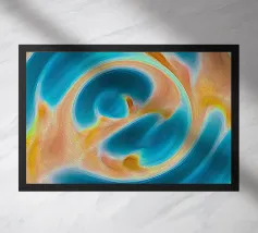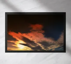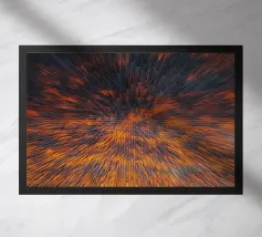 Réinterprétation abstraite d'un ciel de lever de soleil, transformé en motifs circulaires en zigzag dans des tons chauds de rouge, d'orange et de gris. Les teintes dynamiques créent un sentiment de mouvement et d'énergie, ce qui en fait une impression murale audacieuse idéale pour les salons, les bureaux ou les espaces créatifs.