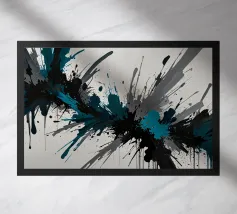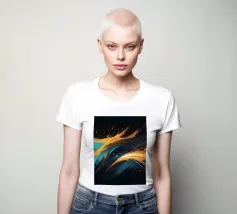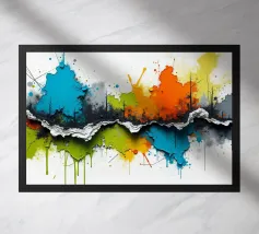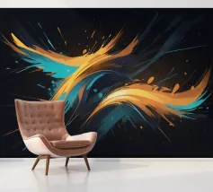 Ce dessin abstrait vibrant et dynamique présente des lignes tourbillonnantes de couleur orange et turquoise sur un fond sombre. Il est parfait pour une utilisation en tant que papier peint ou décoration d'art numérique.