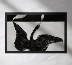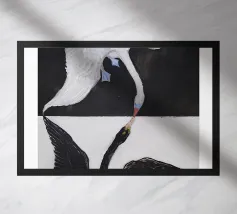 Découvrez la dualité frappante et l'unité profonde du "Groupe IX-SUW, Le cygne, n° 1" (1915) d'Hilma af Klint. Cette œuvre abstraite emblématique représente magistralement un cygne blanc et un cygne noir en miroir, leurs becs se touchant, sur un fond noir et blanc divisé. Elle symbolise l'équilibre harmonieux de forces opposées et la connexion spirituelle. Le rôle de pionnier de Klint dans l'art abstrait est exprimé avec force par sa composition symbolique et son utilisation audacieuse des contrastes. Notre poster numérique de qualité supérieure, d'une résolution époustouflante de 7 000 x 5 000 pixels et de 300 ppp, reproduit impeccablement chaque détail.