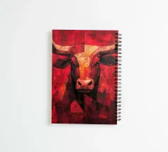 Une représentation abstraite imposante d'une tête de taureau, construite à partir de plans superposés, de textures vieillies et d'une profondeur tonale intense. Sur fond rouge puissant, la forme semble monumentale et symbolique, évoquant la force, la détermination et une présence brute. Les surfaces fragmentées et les détails de type collage ajoutent de la complexité, donnant à l'œuvre un sentiment d'histoire et de poids sous son aspect extérieur audacieux.