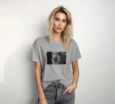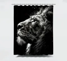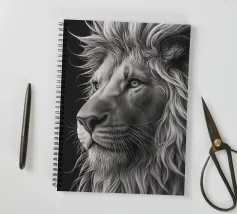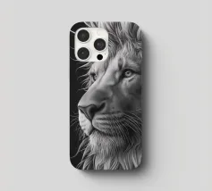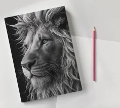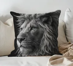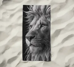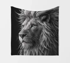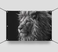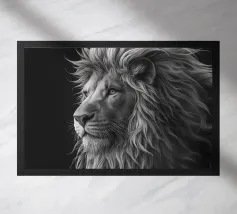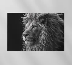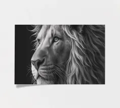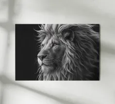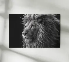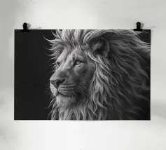 Ce portrait impressionnant en noir et blanc d'un lion majestueux montre sa crinière impressionnante et son puissant museau en gros plan très détaillé. La composition minimaliste et la structure fine du pelage soulignent la beauté et la force naturelles de cet animal sauvage.