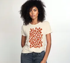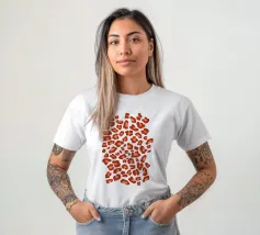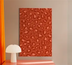 Motif léopard tonal orange rouille, avec des taches léopard orange brûlé et pêche abricot, sur un fond orange rouille.