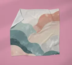 Des courbes douces de bleu et de pêche créent un motif abstrait apaisant qui évoque un sentiment de paix et de relaxation. Ce motif est parfait pour une décoration moderne.