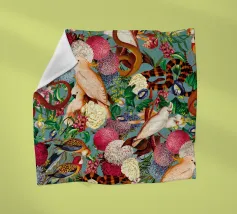 "Les motifs et dessins de Burcu Korkmazyurek passent sans problème de la mode à l'impression sur toile. Ses motifs floraux et animaux réalistes complètent ou contrastent avec des arrière-plans qui vont de l'eau chaude à l'eau froide, en passant par l'eau froide."