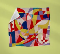 Un patchwork abstrait de formes peintes et texturées dans une palette discrète de bleu, d'ocre et de beige crée une composition sophistiquée et magnifiquement équilibrée, avec une touche artistique et artisanale.