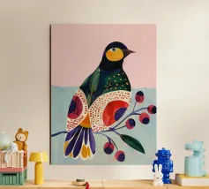 "Patchwork Perfection" captures the vibrant beauty of birds, each adorned in a mosaic of colorful patterns. This art print celebrates the harmony of nature’s palette through intricate feathered details.