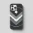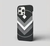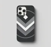 Un logo aux formes géométriques nettes, comprenant un diamant et des chevrons superposés, affichés en nuances de gris sur un fond sombre et élégant, mettant en valeur l'esthétique moderne du design.