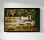 J'ai découvert ce banc isolé au bord d'un petit lac. J'ai pris cette photo au début de l'automne, alors que quelques feuilles vertes étaient encore accrochées aux arbres. Malgré cela, l'image transmet une belle ambiance automnale. Idéal comme poster sur le mur du salon ou de la chambre à coucher. Aussi comme décoration dans l'appartement ou la maison de vacances. :)