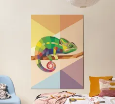 Lézard reposant sur une branche entourée de feuilles en stylisation hahnemühle