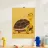 Tortue à l'expression joyeuse sur un tableau jaune vif hahnemühle