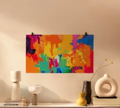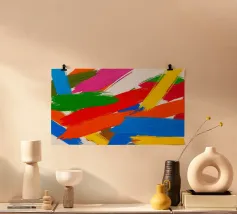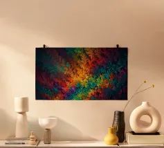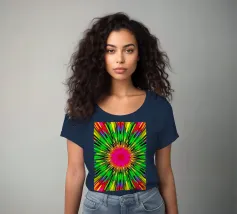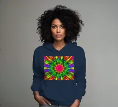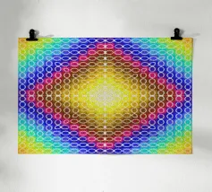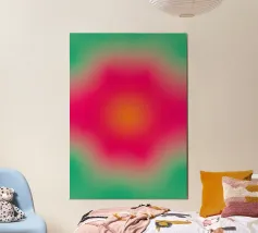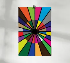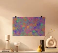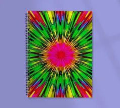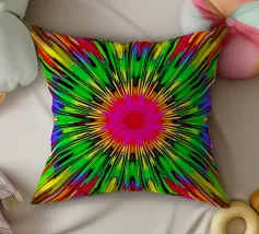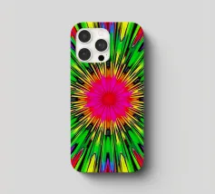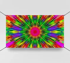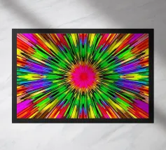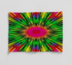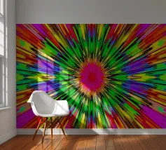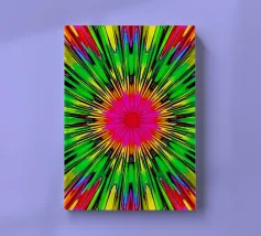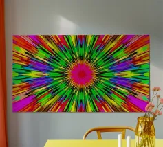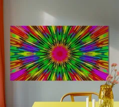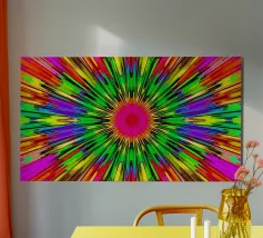 Cette œuvre d'art captivante présente une explosion radiale centrale de couleurs vives, dont le rose, le vert et le violet. Ce dessin abstrait crée une expérience visuelle saisissante qui convient à diverses utilisations artistiques.