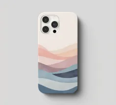 Des courbes douces de bleu et de pêche créent un motif abstrait apaisant qui évoque un sentiment de paix et de relaxation. Ce motif est parfait pour une décoration moderne.