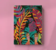 Composition moderne et abstraite présentant un patchwork de motifs et de formes variés. Les éléments comprennent des formes organiques semblables à des feuilles, des grilles géométriques et des textures abstraites dans une palette sourde de rose, de noir et de beige, reflétant un style bohème et éclectique.