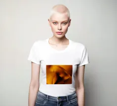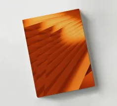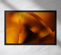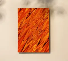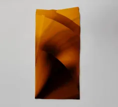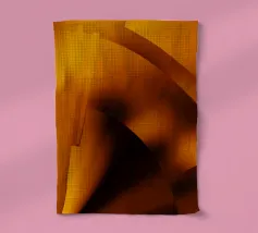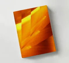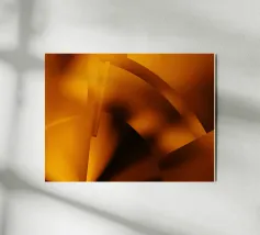 L'image montre des motifs géométriques abstraits dans les couleurs orange et jaune.