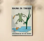 Cette illustration ludique montre une grenouille déterminée qui s'accroche à un roseau au-dessus d'un étang, tandis qu'un poisson curieux l'observe en dessous. Avec le message inspirant "La vie est dure mais tu es plus dur", cette œuvre d'art apporte encouragement, résilience et motivation. Un rappel parfait pour rester fort face aux défis de la vie.