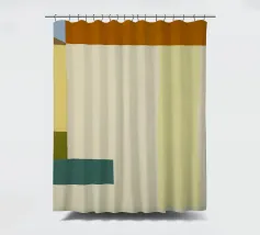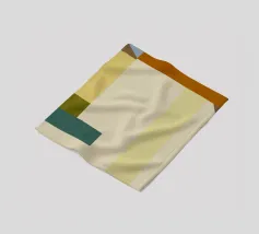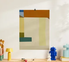 Des formes géométriques aux teintes et couleurs variées sont disposées de manière abstraite. Des transitions douces entre les formes et une palette de couleurs harmonieuse créent une composition apaisante.