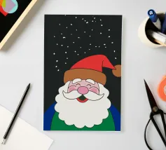 Illustration à l'aquarelle d'un portrait du Père Noël qui fait un clin d'œil.