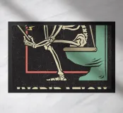 Drôle de squelette assis sur les toilettes L'inspiration ne vient pas facilement
