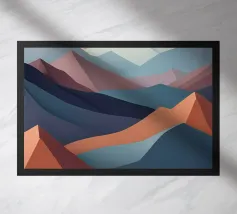 Paysage stratifié où les sommets se fondent doucement dans l'horizon. Chaque crête se fond dans la suivante par de douces variations de tons - bleus, violets ou tons chauds de la terre - créant ainsi profondeur et calme. La scène évoque la sérénité, l'échelle et la beauté tranquille de la nature en transition.