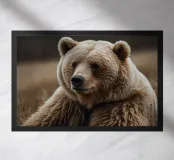 Un ours brun se repose paisiblement parmi les hautes herbes dans un cadre serein, se prélassant dans la douce lumière du matin, entouré par la beauté de la nature.