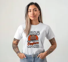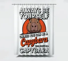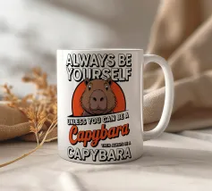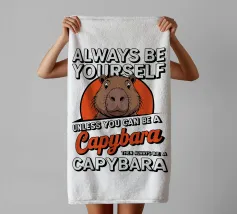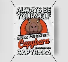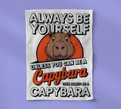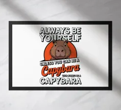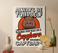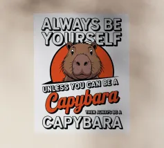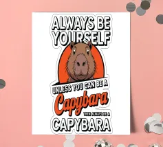 Une jolie illustration de capybara entourée d'un texte de motivation. Les mots encouragent l'individualité avec une touche d'humour, soulignant le charme des capybaras.