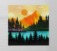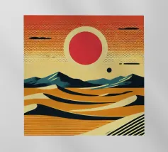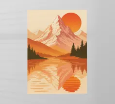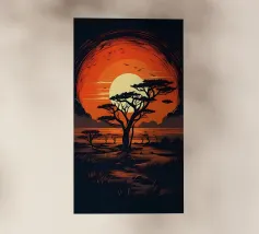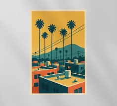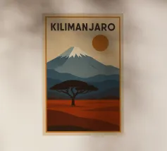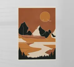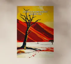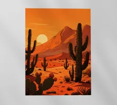 Couchers de soleil brûlants, roche rouge et silhouettes inoubliables d’arbres de Josué. Cette affiche résume l’essence brute et mystique du désert californien. Un style fort, à la fois graphique et contemplatif