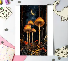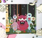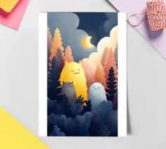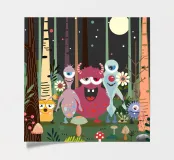 Un groupe de monstres amusants dans une forêt nocturne, entourés de fleurs, de champignons et de lumière magique. Ce design est ludique, créatif et parfait pour tous les fans de monstres et de fantaisie.