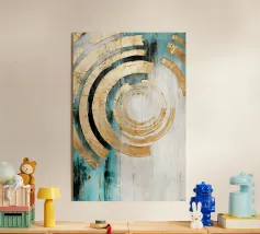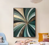 A captivating abstract painting featuring a swirling vortex of emerald green hues, accented by metallic gold accents and textured patterns. The artwork evokes a sense of depth and movement, drawing the viewer into its mesmerizing depths.