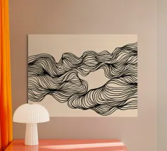 Cette œuvre d'art allie un tracé hypnotique à des motifs de vagues doux et rythmés qui rappellent le flux et le reflux infinis de l'océan. La conception monochrome renforce l'effet apaisant, presque méditatif, des lignes répétitives qui se combinent pour former des formes organiques et fluides. La structure claire et les courbes douces créent un équilibre harmonieux entre le mouvement et le silence.