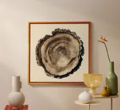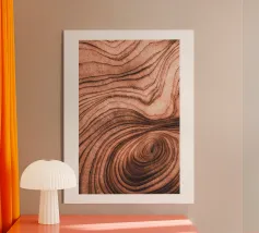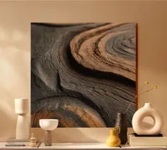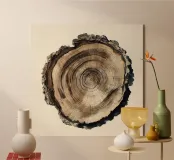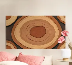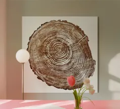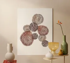 Une aquarelle minimaliste mais complexe d'une coupe transversale d'arbre, capturant la force tranquille et le passage du temps à l'intérieur de chaque anneau. Cette pièce organique et terreuse est parfaite pour les intérieurs modernes inspirés par la nature, les cabanes ou toute personne attirée par la beauté des formes naturelles brutes.
