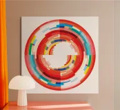 Fusion dynamique de couleurs et de mouvements, "Vibrant Vortex" attire le regard dans un tourbillon numérique hypnotique de précision géométrique. L'interaction audacieuse des teintes rouges, bleues et jaunes crée un sentiment d'énergie et de transformation, ce qui en fait une pièce d'apparat frappante pour tout espace moderne.