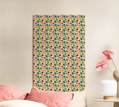 Un motif vibrant et coloré présente une variété de formes en rouge, bleu, orange et vert. Répété dans une disposition symétrique, le motif crée un rythme visuel qui attire l'attention.