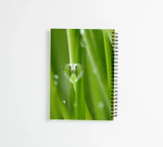 Green grass with a heart-shaped drop of water