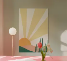 Une œuvre d'art numérique audacieuse et ludique présentant des tranches de citron et de citron vert stylisées, disposées dans un motif géométrique vibrant. Avec des ombres nettes et une texture de papier tactile, ce dessin fusionne l'esthétique Bauhaus et la fraîcheur méditerranéenne. Parfait pour la décoration de la cuisine, les impressions estivales ou les amateurs d'art mural moderne.